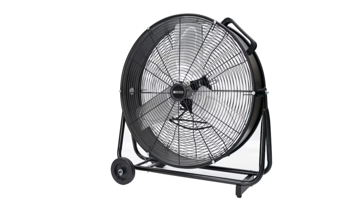24 in. roll-around, tilting drum fan, is ideal for job sites, warehouses, garages, or even outdoors on the patio. The fan is very versatile as it is portable, and the airflow can be directed exactly where needed. This fan is perfect for small to medium sized ventilation requirements.